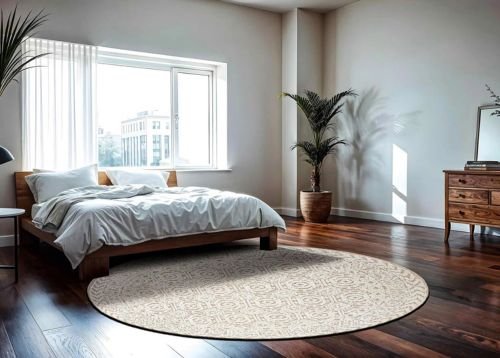 Each round rug is handmade, so each one is special. Skilled people combine old-school weaving with cool new designs to make round rugs that look good, work well, and last a long time.